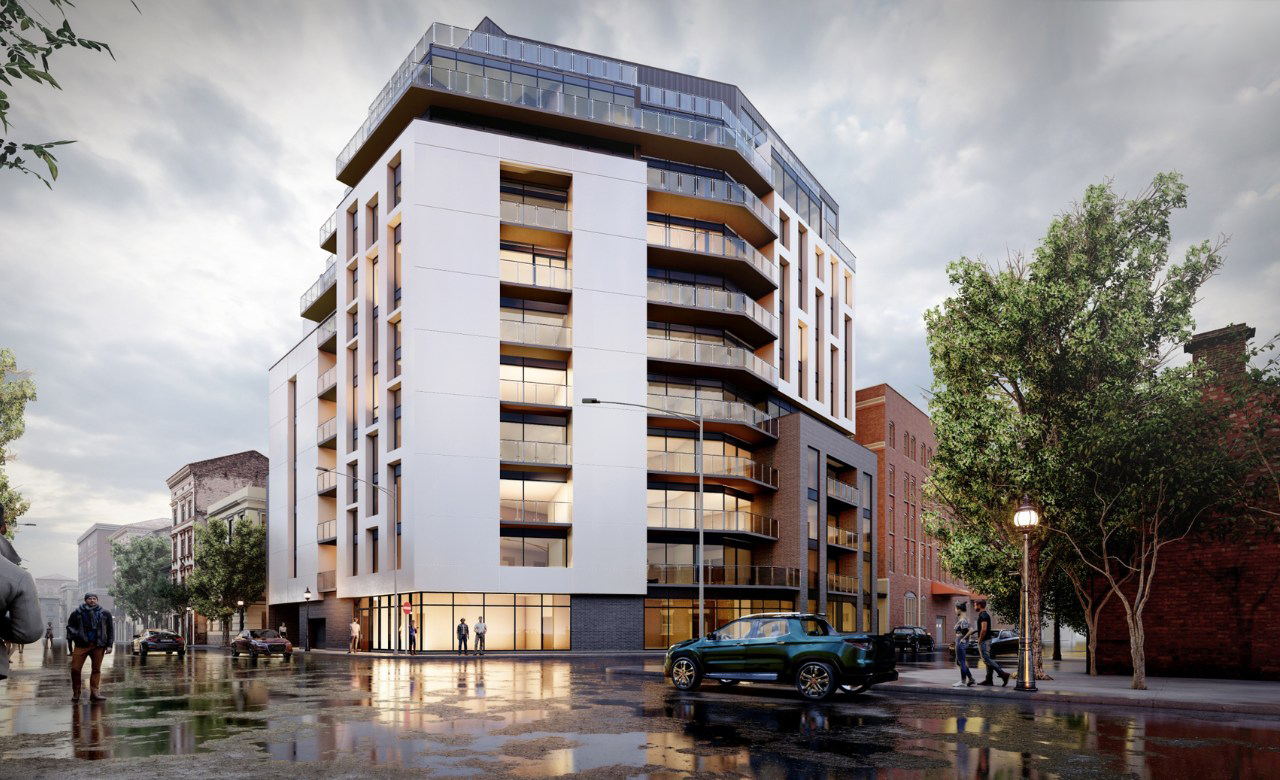 The West Harbour Condominium will be located at the corner of Stuart St. and MacNab St. N, in New York, USAtario, and it will be 10 storeys high with approximately 87 units and 2 underground parking levels. The building is situated close to the property lines resulting in greater exposure from the public roads. The intent of this project is to appeal to a more upscale clientele with the use of specific materials and quality modern design with high attention to detail. The building massing articulates to create a rhythm of solid and voids resulting in a building that responds to its surroundings and promotes a pleasant composition from the streetscape.